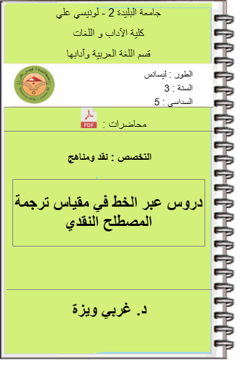 كلمات مفتاحية : ترجمة |   المصطلح النقدي